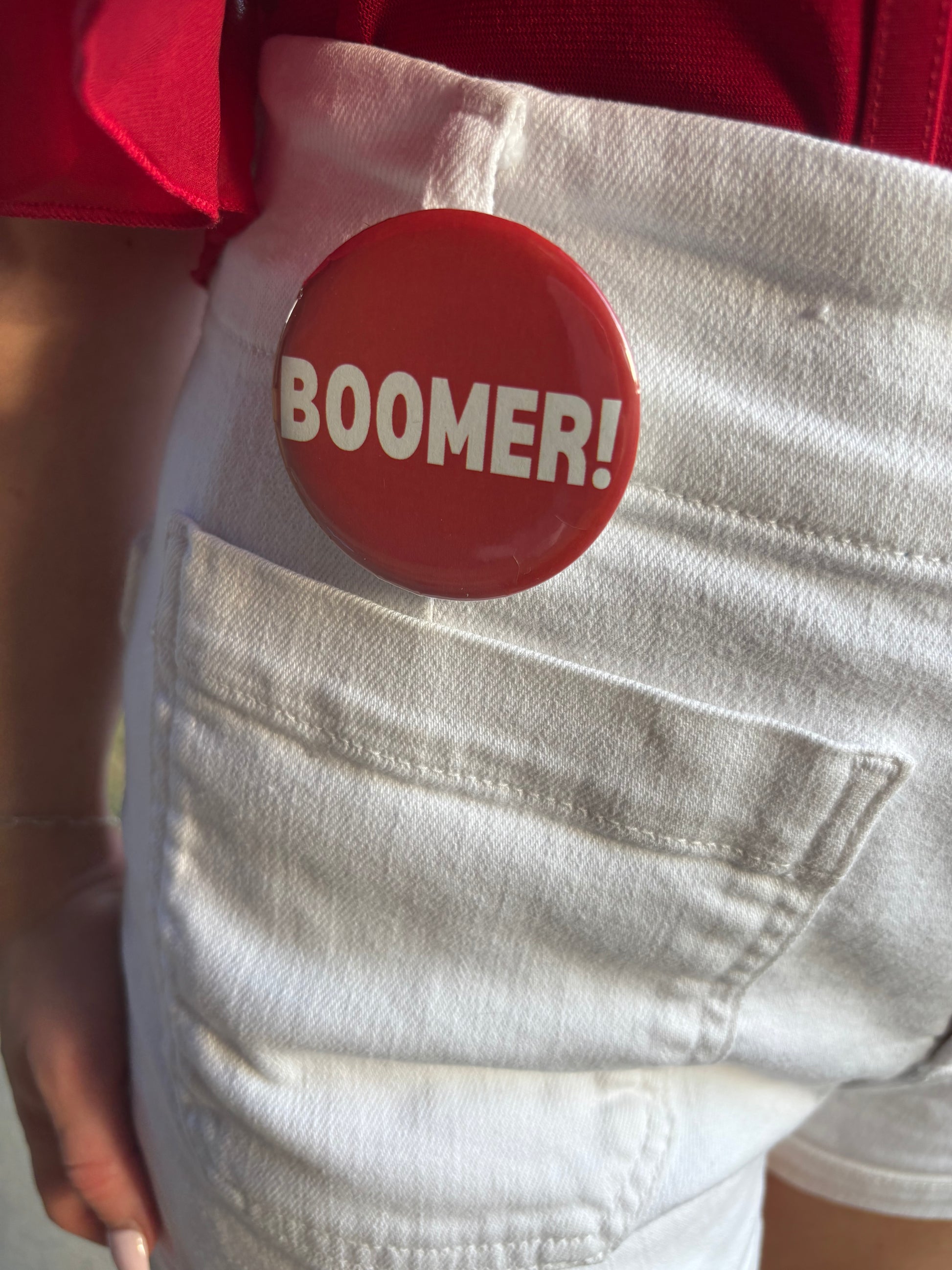 Short, bold, and straight to the point, this button is all about Sooner energy. Perfect for pairing with any gameday outfit, it’s the ultimate way to start the chant and show your pride loud and clear. Wear it to the stadium, tailgate, or anywhere you want to make a statement.