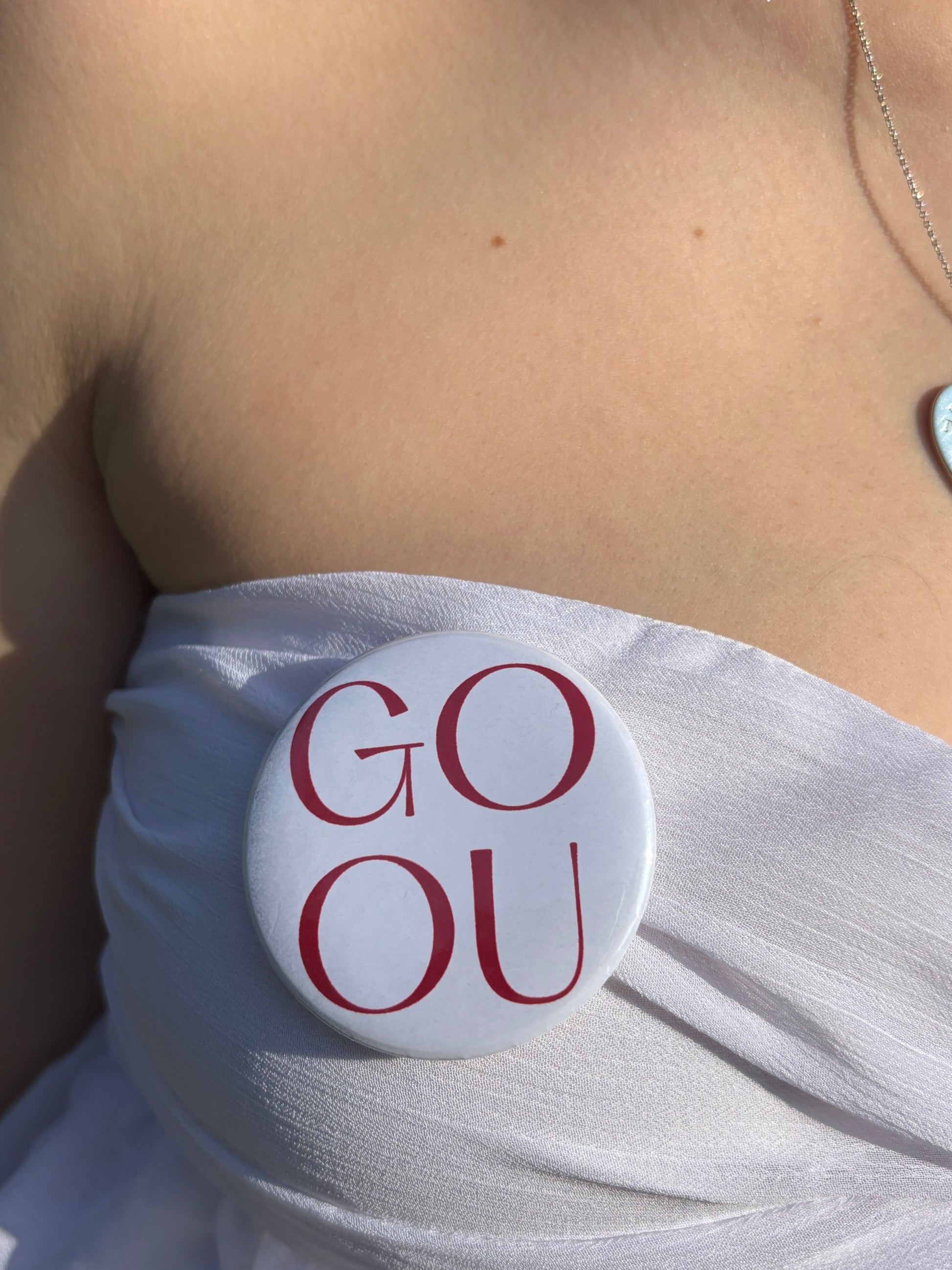 Cheer loud and proud with this classic gameday button! Featuring bold crimson lettering on a clean white background, this design is simple, stylish, and the perfect finishing touch to any Sooners gameday look.