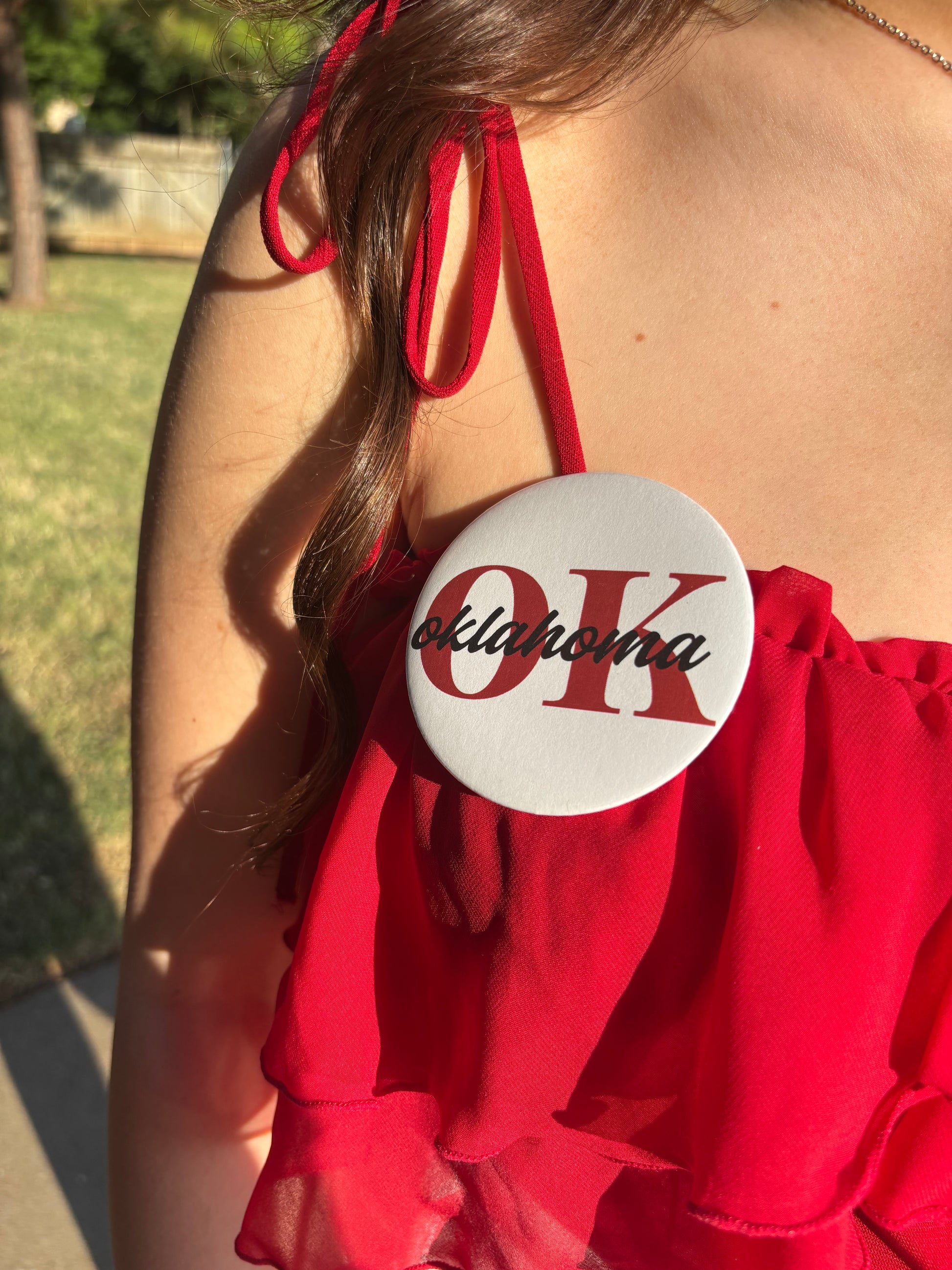 Simple, bold, and full of pride, the OK Oklahoma button blends state spirit with game day energy. Featuring a clean crimson “OK” above “Oklahoma,” it’s a timeless design that pairs perfectly with any Sooner fan’s collection. Whether you’re in the stadium, at a tailgate, or just repping your roots, this one’s a go-to.