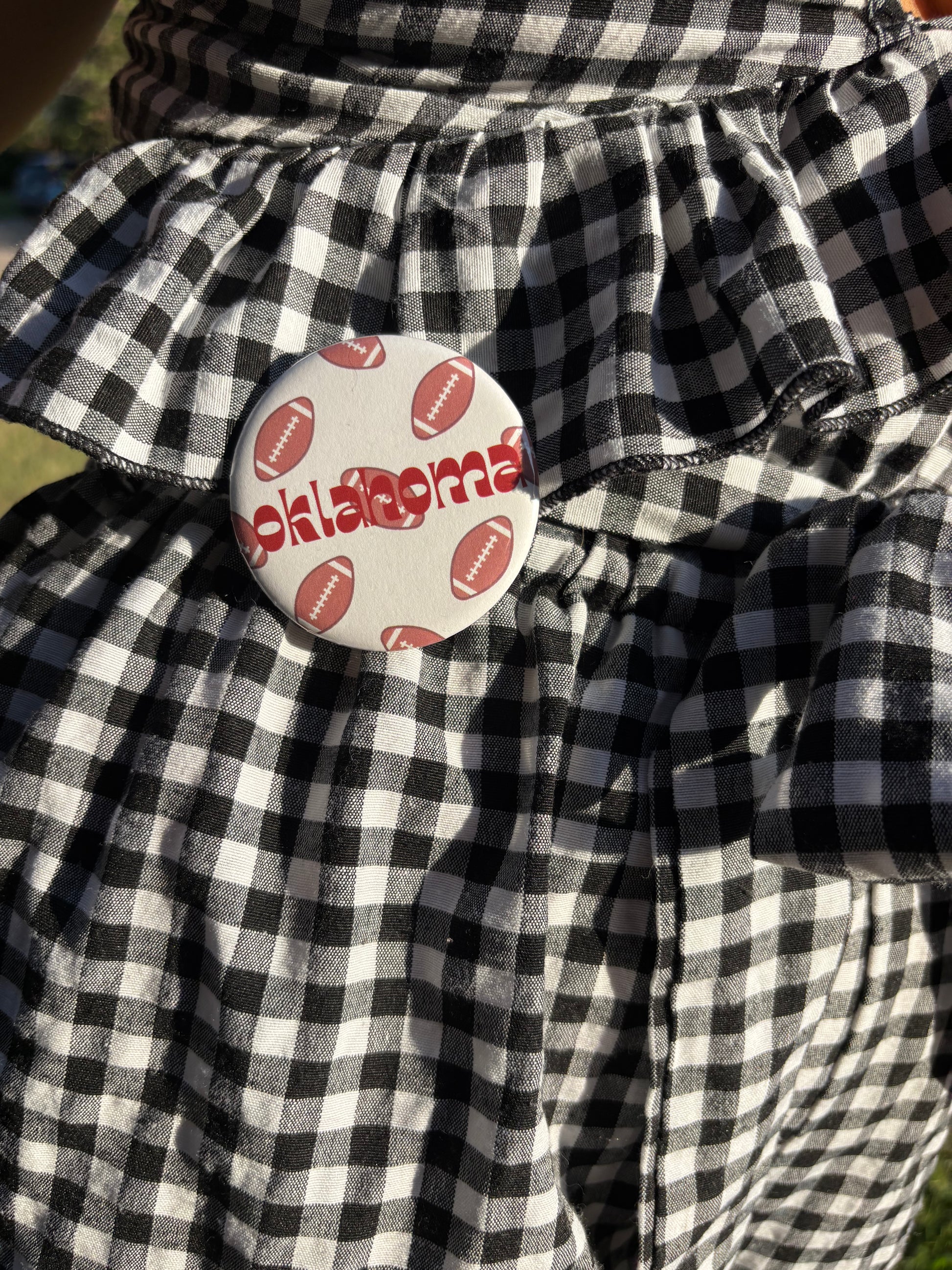 Show your love for the game with this fun, football-themed design! Perfect for pairing with any gameday outfit, it’s a playful way to rep crimson and cream all season long.