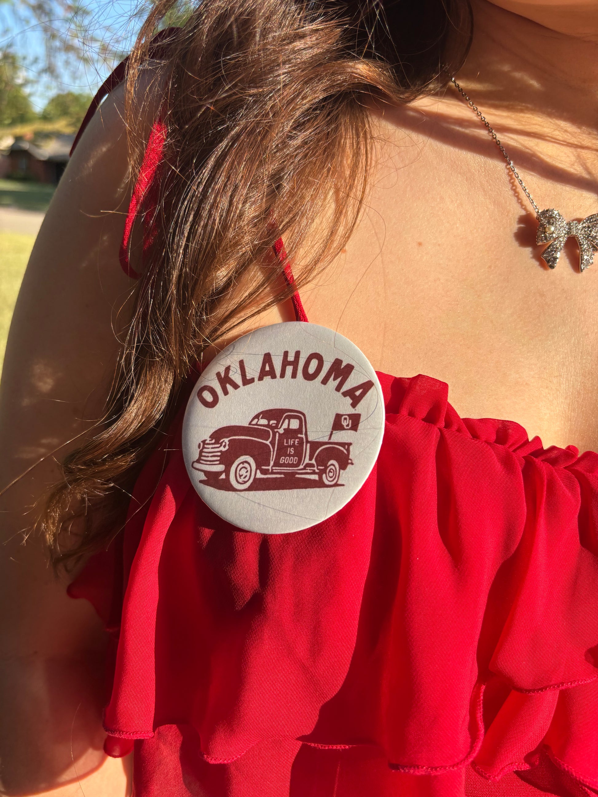 Vintage charm meets Sooner pride in this nostalgic design. Featuring a classic pickup with a bold OU flag, it’s perfect for fans who love a timeless, laid-back gameday look. Wear it to tailgates, campus events, or just to bring a little Oklahoma spirit to your everyday style.