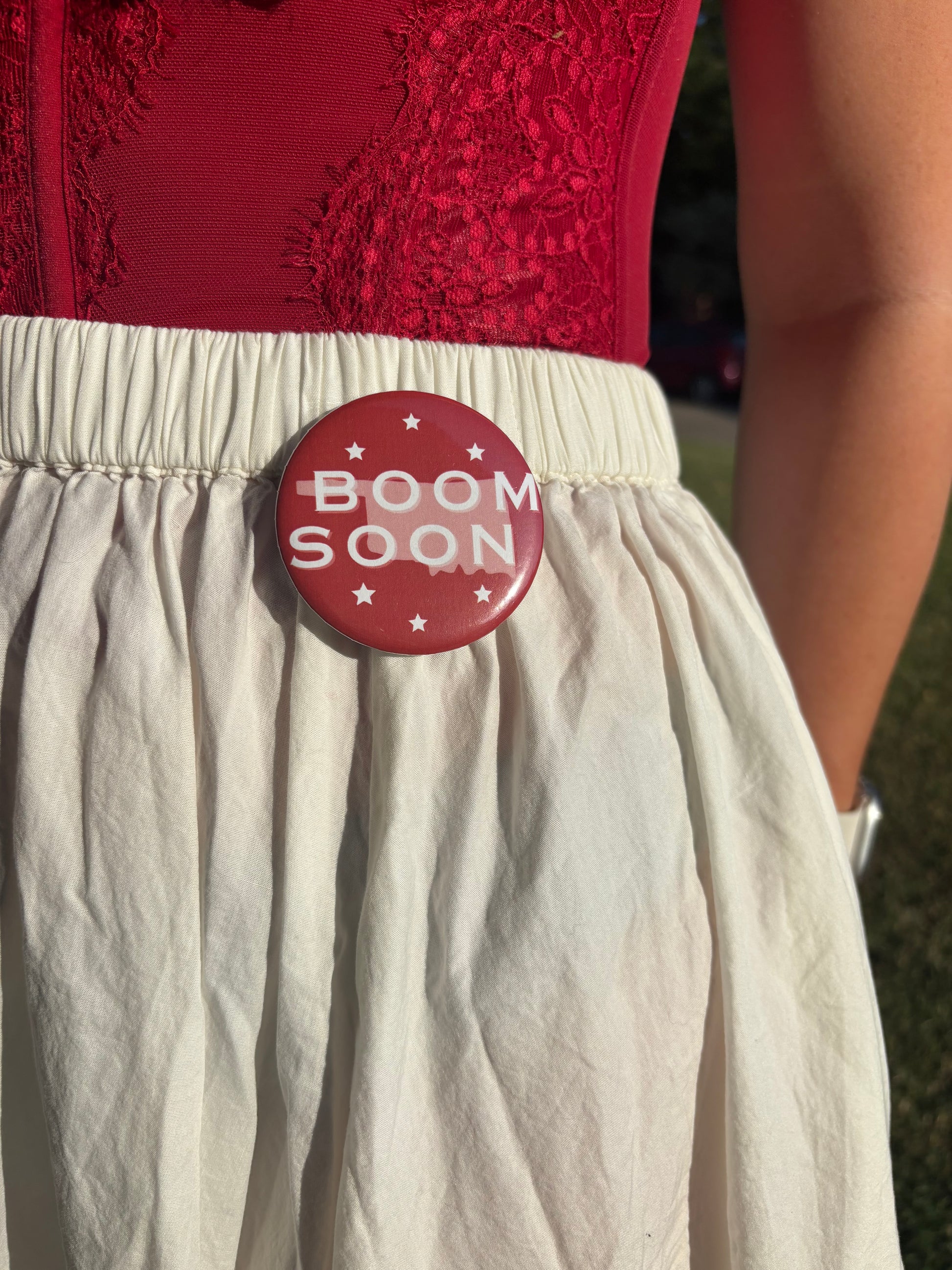 Bold and Spirited! Featuring a crisp white Oklahoma silhouette against deep crimson with classic star accents, this button makes a statement on any gameday. Perfect for fans who want their OU pride to shine as bright as the stadium lights.