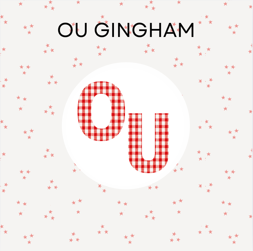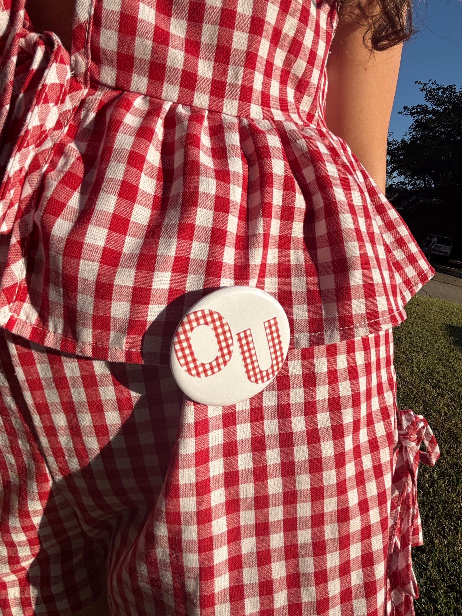 Bring a little picnic-chic flair to game day with this playful gingham design. A fresh twist on Sooner spirit, perfect for tailgates, cheering in the stands, or just repping your pride with style.