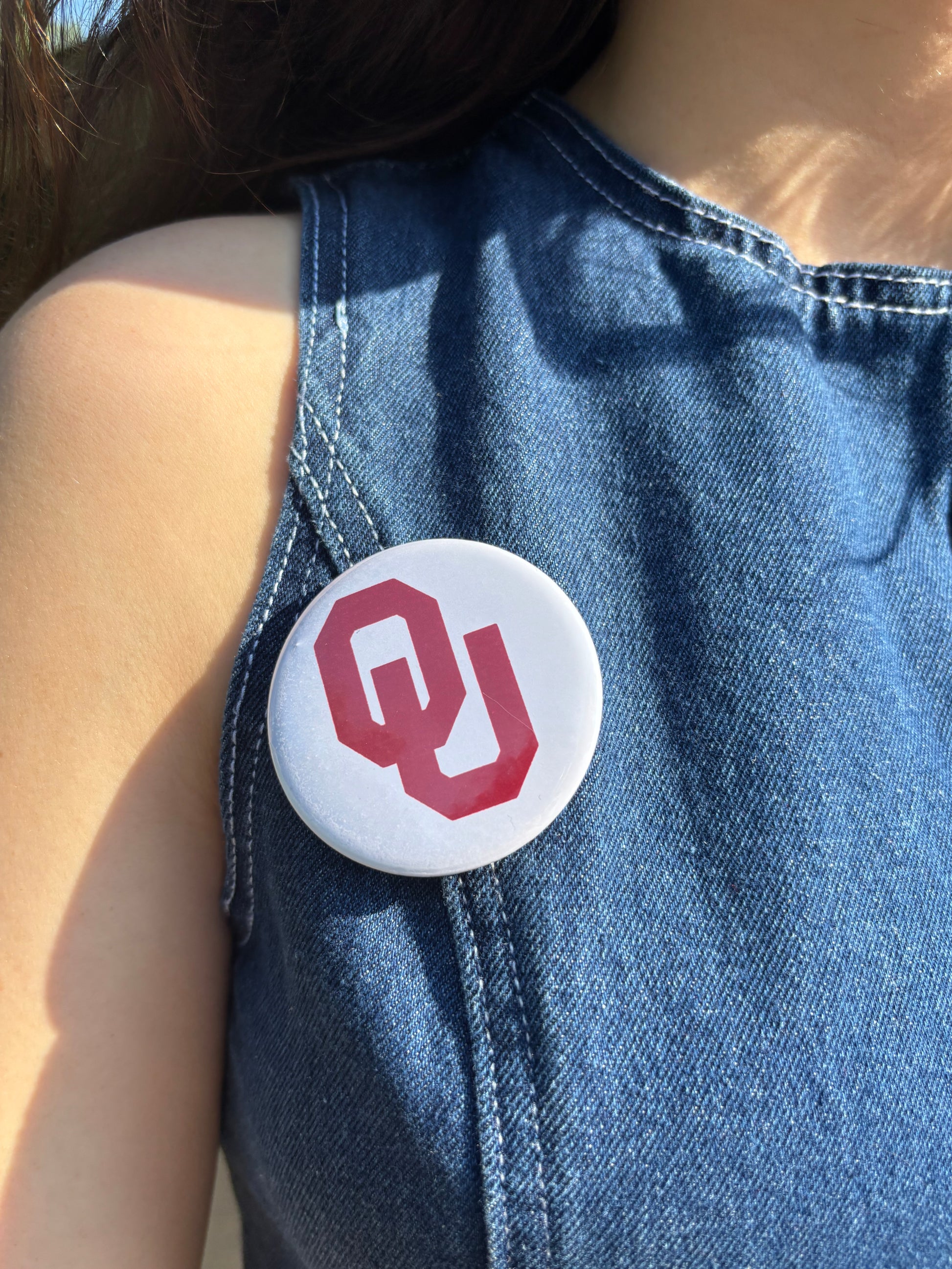 The ultimate symbol of Sooner pride. Featuring the bold crimson-and-white OU logo, this button is a must-have for any fan who loves a crisp, traditional look. Perfect for pairing with any gameday outfit, from stadium-ready gear to everyday crimson and cream style.