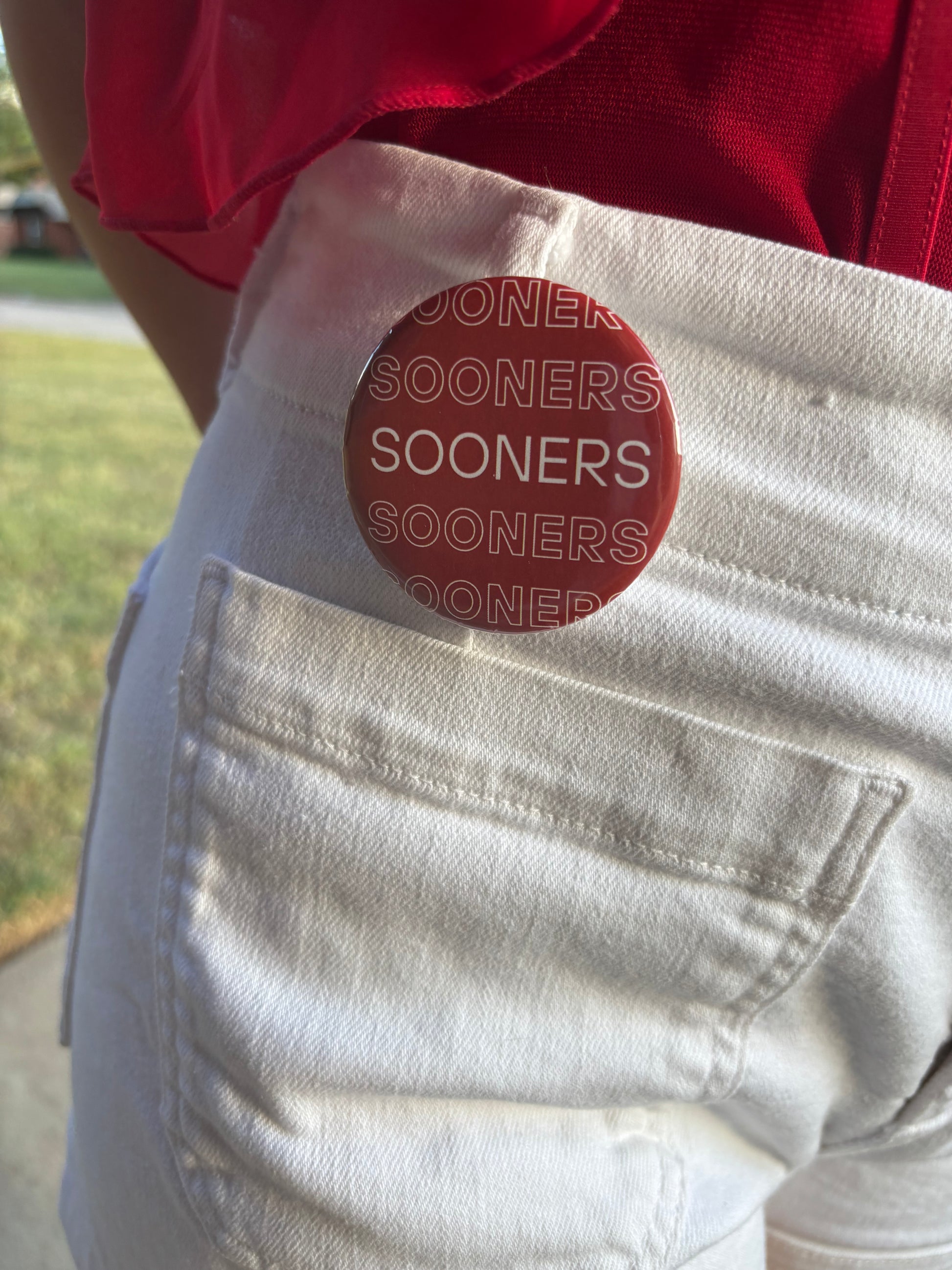 Bold, simple, and unmistakably OU, this repeating “Sooners” design makes a statement without saying a word. Perfect for pairing with any gameday outfit, from casual tailgate looks to polished stadium style. A timeless choice for fans who bleed crimson and cream.