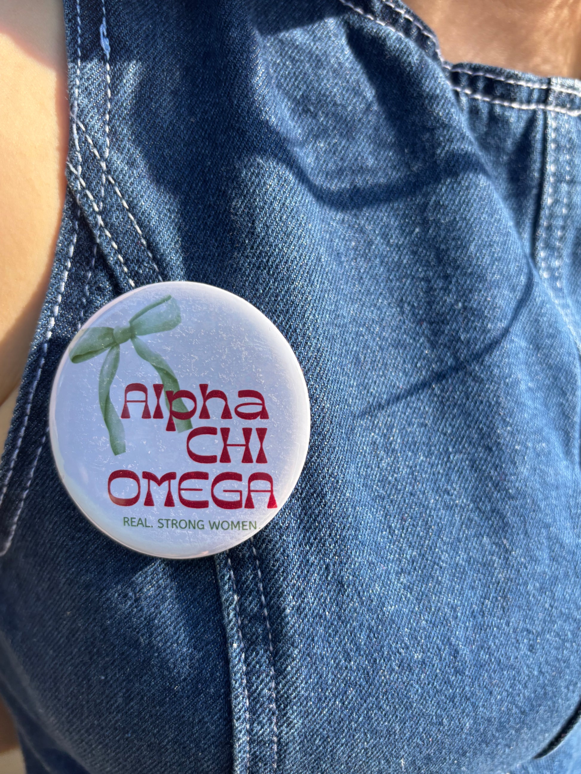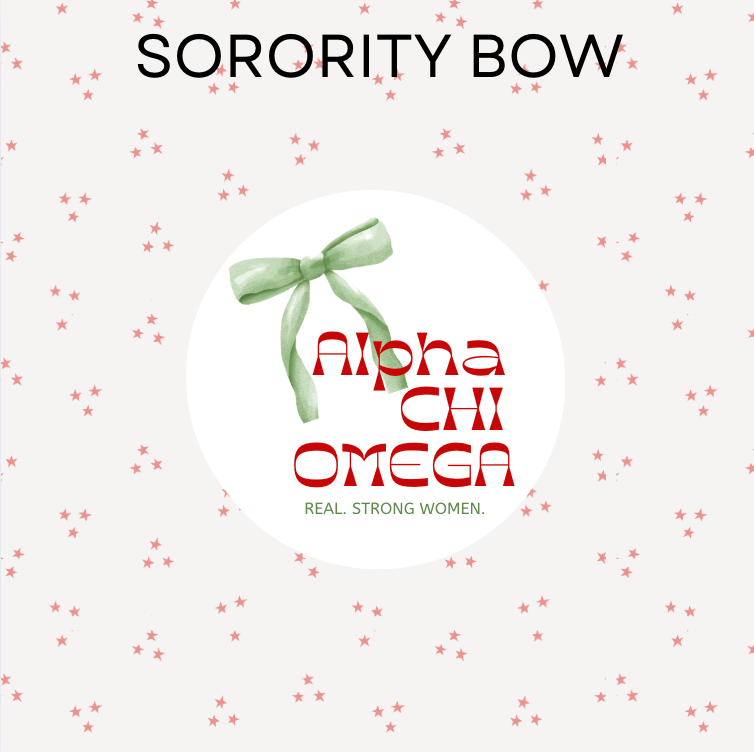 Step into gameday with this sweet design featuring your sorority and a chic bow. Perfect for showing off your sisterhood pride while keeping your look cute and spirited!