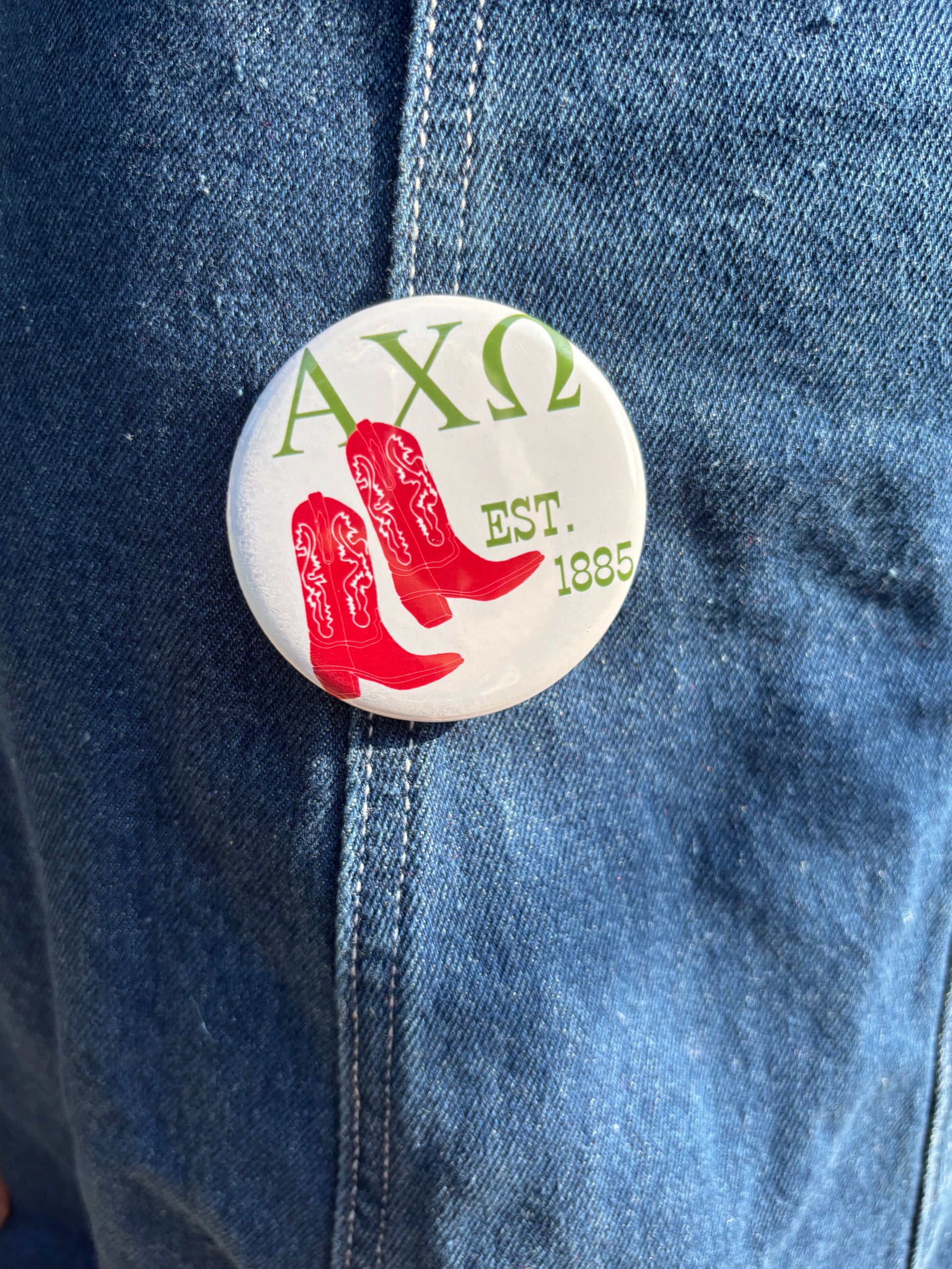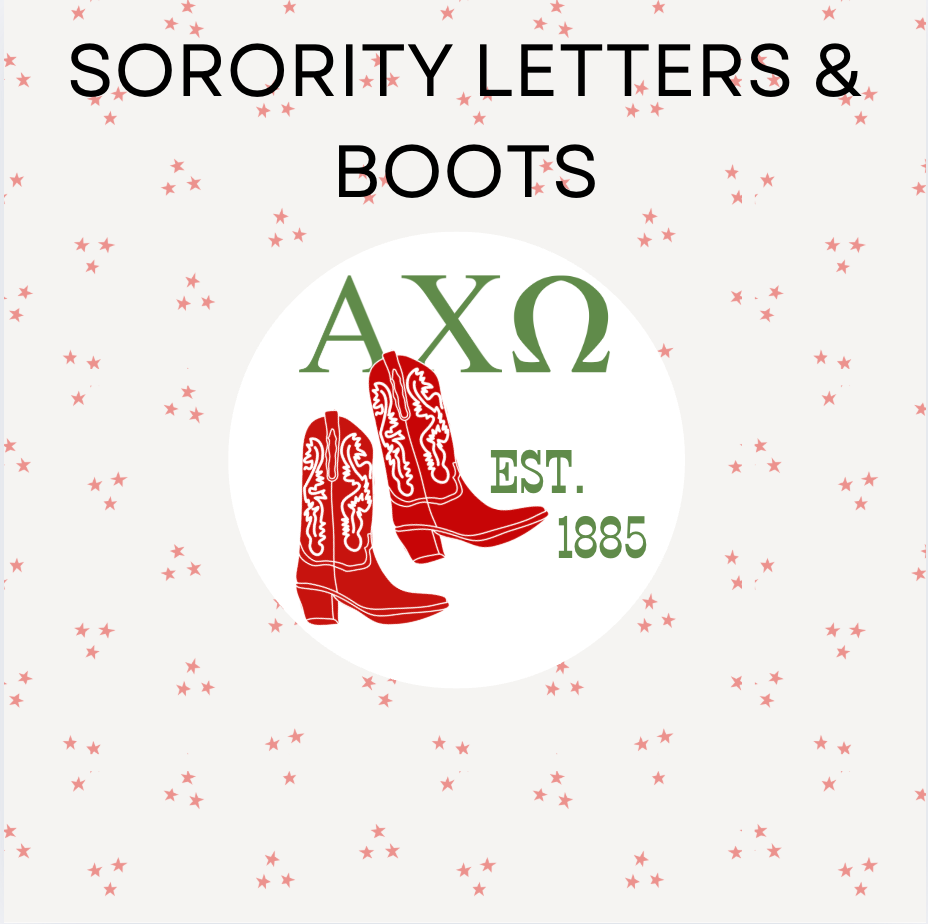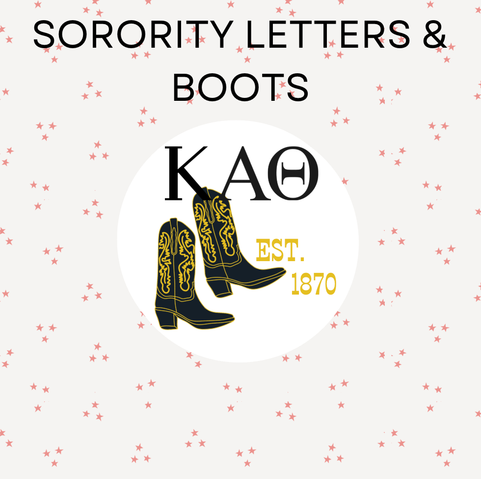Step into gameday with this bold and sassy design featuring your sorority letters and classic cowgirl boots. Perfect for showing off your sisterhood pride while keeping your look fun and spirited!