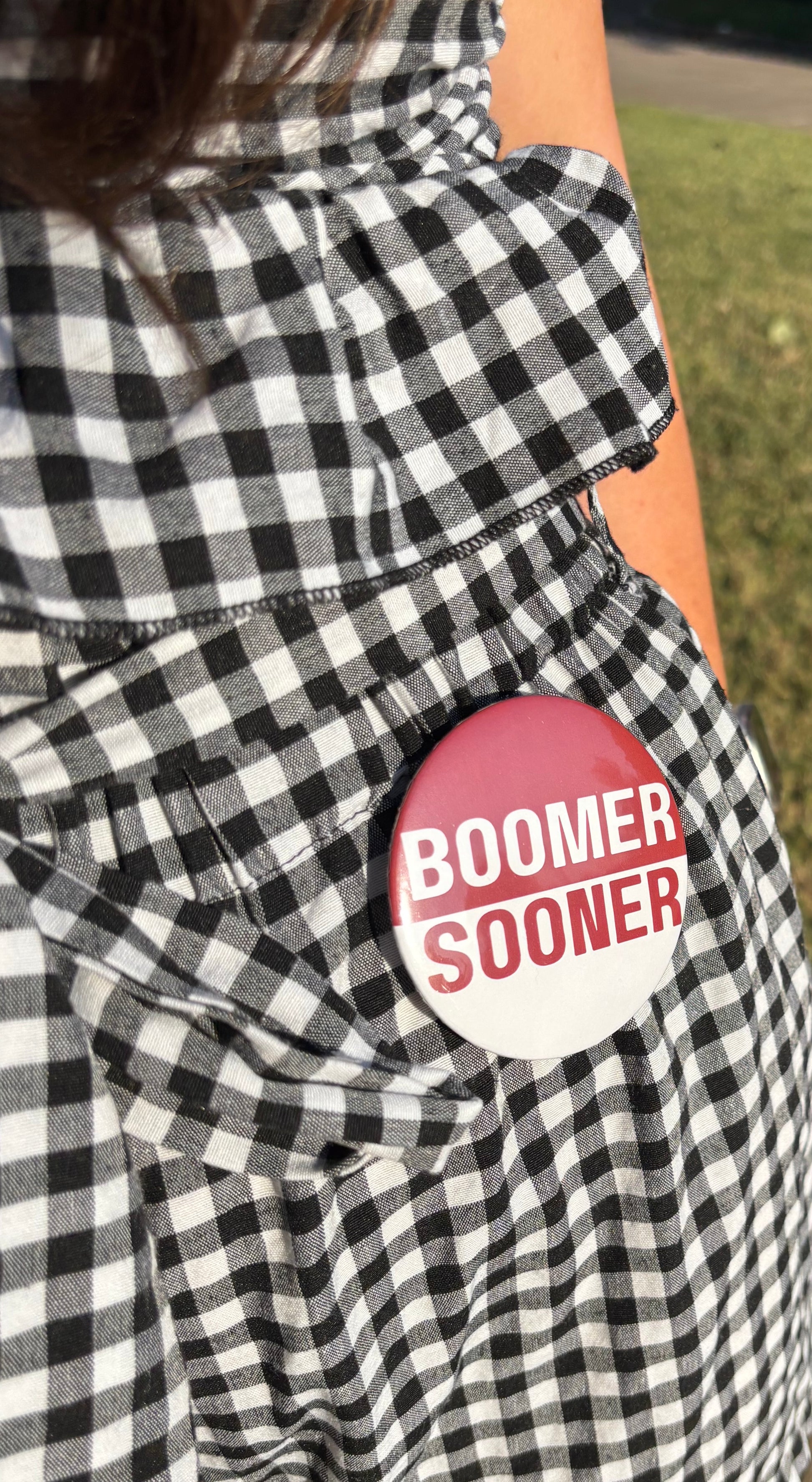 Double the pride, double the spirit! This bold split-crimson-and-white design makes “Boomer Sooner” stand out in style. A classic gameday essential that pops with energy while keeping it sleek and spirited.